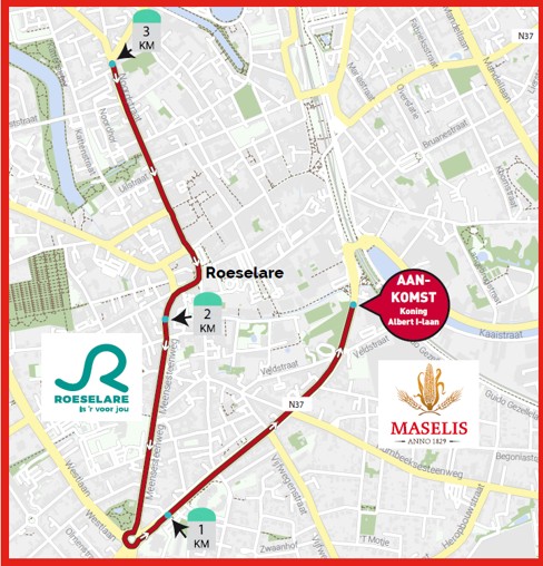 De officieuze start is om 11u25, op de Markt. De officiële start is om 11u35 in de Kortemarkstraat.
